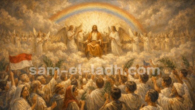 Mereka berdiri di hadapan Takhta dan Anak Domba, berpakaian jubah putih dan memegang daun-daun palem. Teriakan mereka menggema: “Keselamatan bagi Allah kami yang duduk di atas takhta dan bagi Anak Domba!” (Wahyu 7:10).